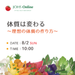 まだまだ続きそうなコロナ。そんな時代だからこそ「理想の体質」を手に入れて、いつまでも元気で楽しく過ごしましょう!栄養学を学ぶための一番の基本である「体質」の話を中心にお話しします。
